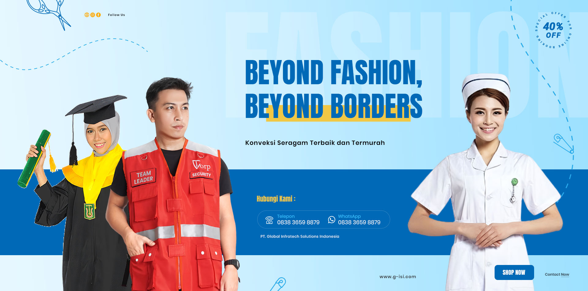 Berdiri dengan komitmen untuk menghadirkan solusi terbaik dalam dunia konveksi seragam, GISI telah dipercaya oleh banyak instansi di Indonesia maupun internasional, termasuk Timur Tengah dan Afrika.